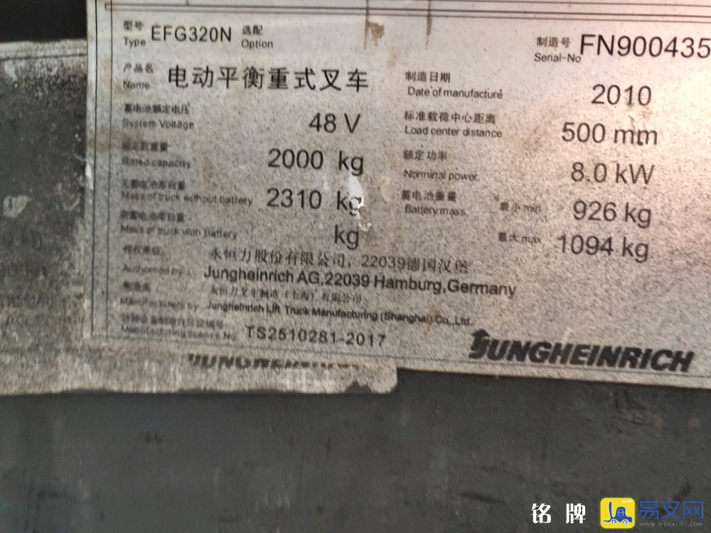 永恒力 EFG320,售价面谈,2010年出厂,小时数0